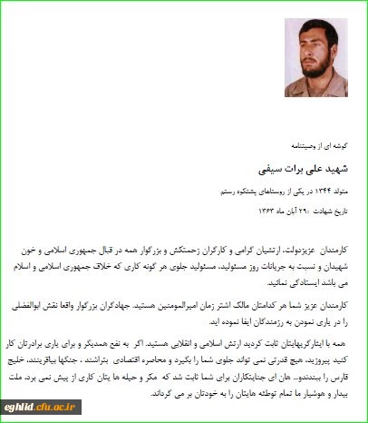وصیت نامه شهید بزرگوار علی برات سیفی