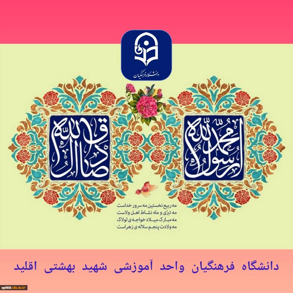 امتیاز دهید : ولادت با سعادت حضرت محمد مصطفی(ص) و حضرت امام جعفر صادق(ع) مبارک باد 2 جمعه 22 مهر 1401 ساعت 12:55